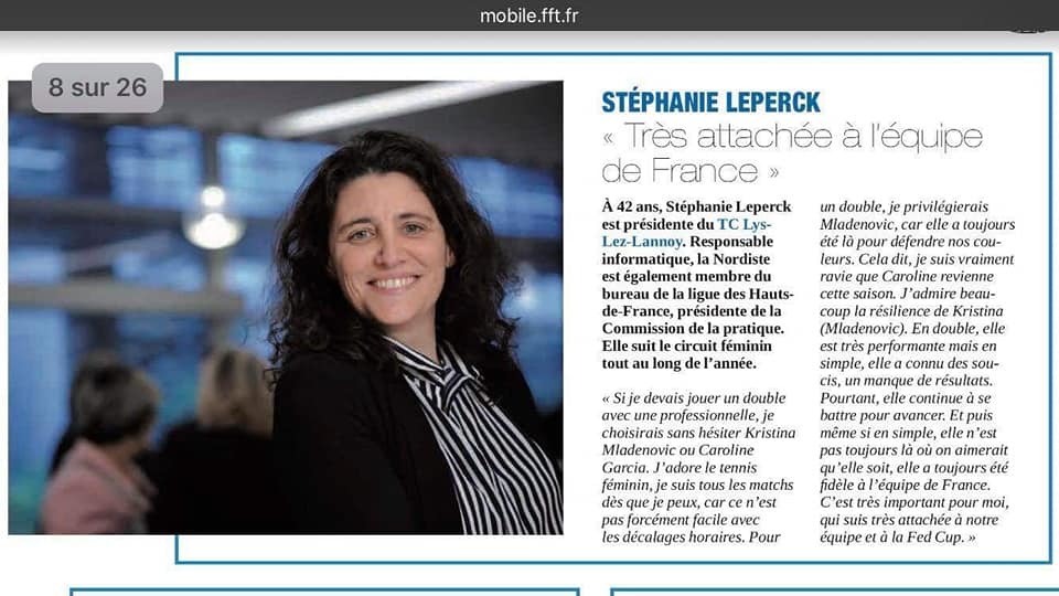 Notre présidente mise à l'honneur dans le dernier "Tennis info"